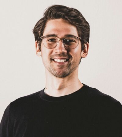 A hand holding a smartphone displaying an introduction screen for ChatGPT with the text visible. The background features a blurred computer screen showing similar content, creating a mirror effect. Both screens have a green and purple color scheme.
